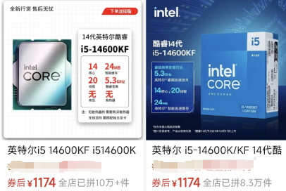 但要考慮的一點是:14600KF未來不好升級,升級新一代CPU得更換新主板......