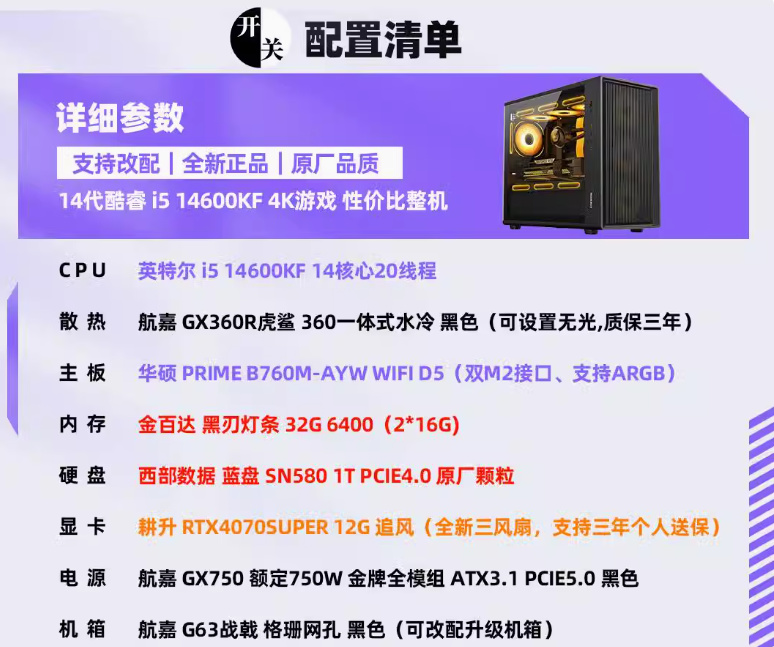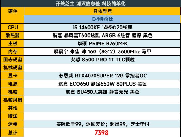 顯卡其實可以換成必恩威的RTX4070S掌控者,大概便宜200元: