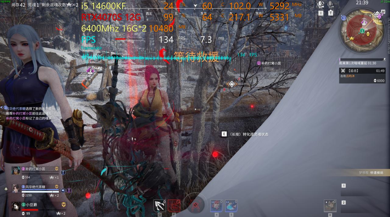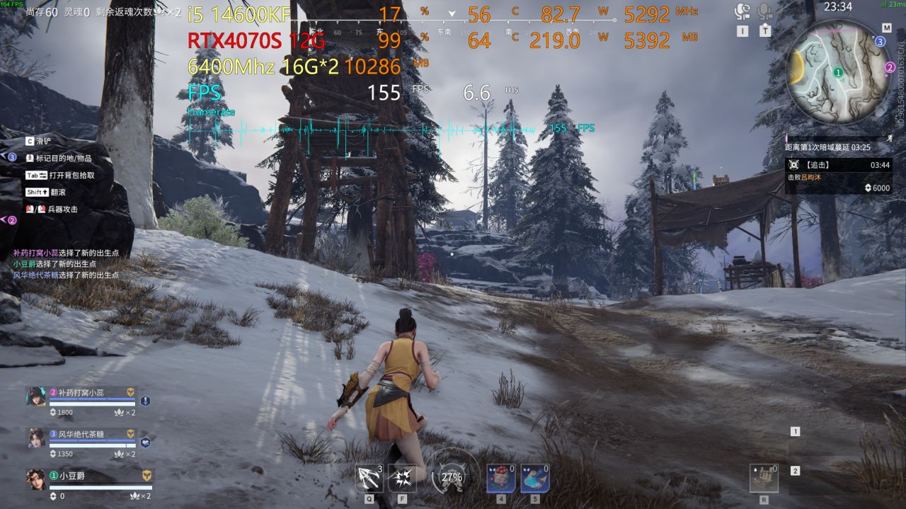 最後是永劫無間,4K分辨率高畫質預設下,三排匹配、真人對局表現: