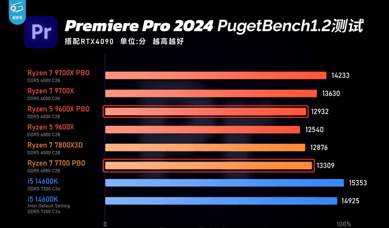 我這裏借用極客灣的評測數據看看,主流生產力軟件下,14600KF的性能表現: