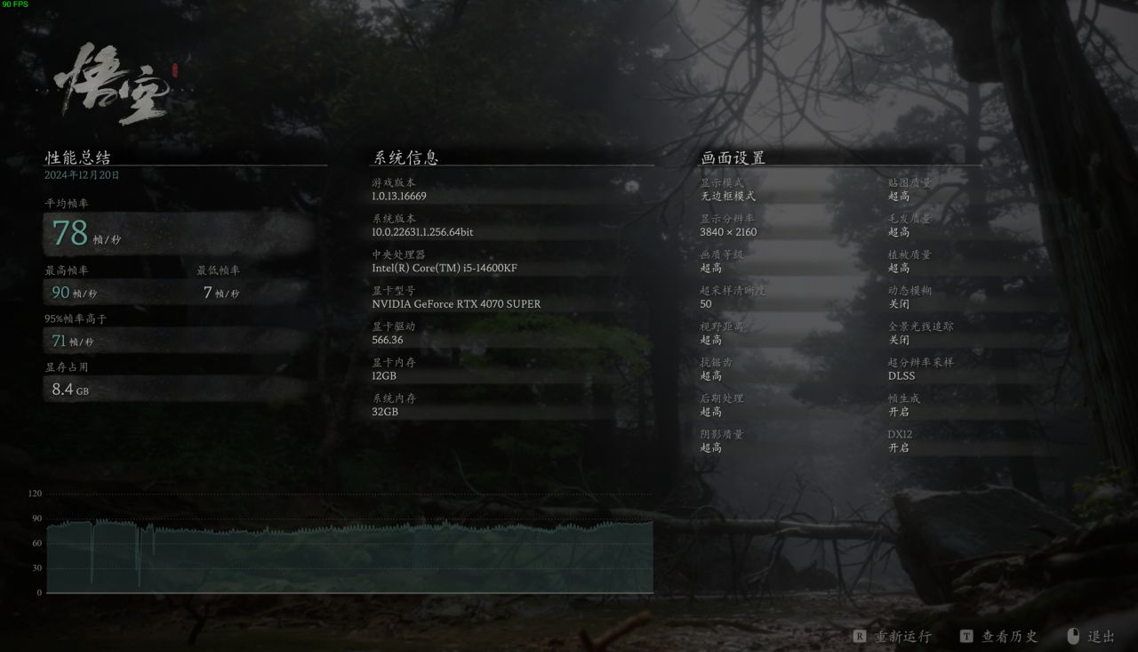 黑神話,4K超高畫質預設下,可以流暢運行: