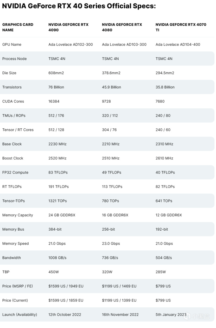 目前40系显卡参数图: