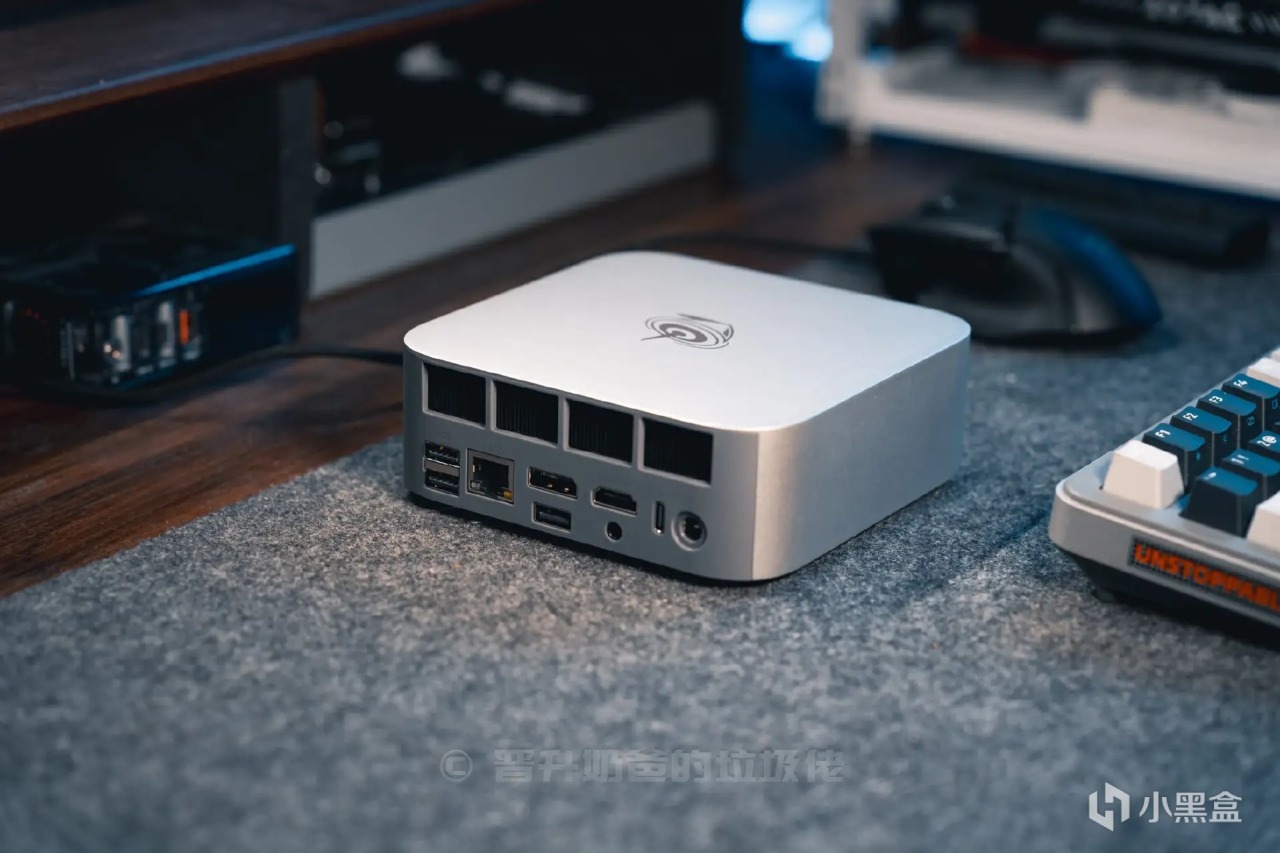 ▼SER8採用了CNC一體化金屬機身,除了I/O接口之外沒有開孔,顏值相當的高,對於長期使用翻車訊N1的小巧設備作爲服務器的小夥伴們來說想來有先天的吸引力(至少對於我來說是這樣的)。設備的硬件接口也給的很足:前置I/O接口上提供了Clear CMOS孔位、3.5mm音頻接口,1個Type C、1個USB-A(10Gbps)接口;背部I/O則有2個USB 2.0,1個USB-A(10Gbps)、1個Type-C 滿血40Gbps接口,1個2.5G rj45網口,1個HDMI 2.1、1個DP1.4接口。