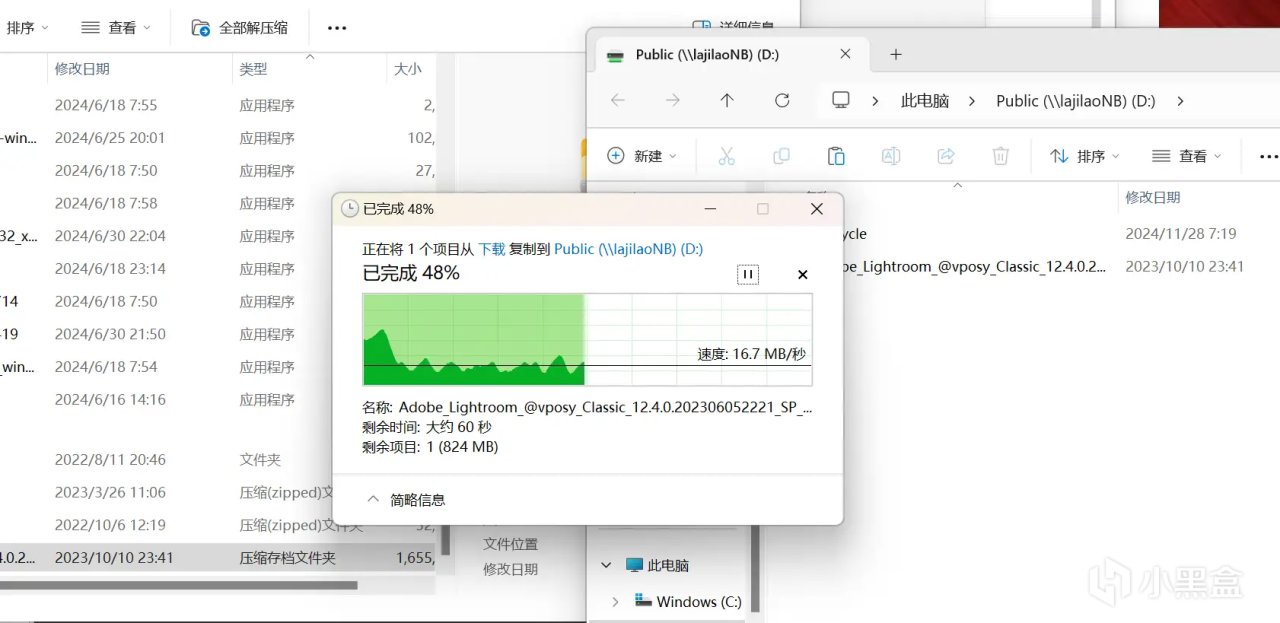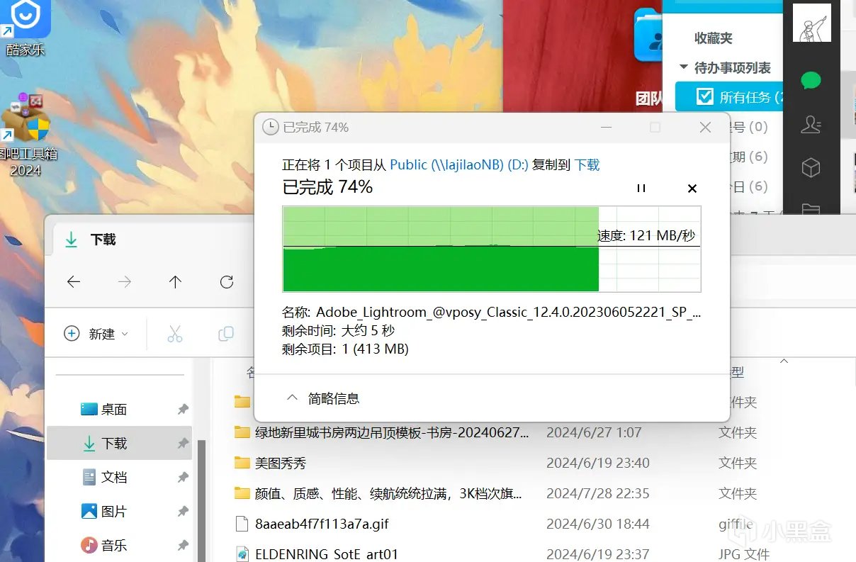 ▼從SER8的虛擬機黑羣暉SMB上拉取文件到本地,速度大致在120MB/s左右。