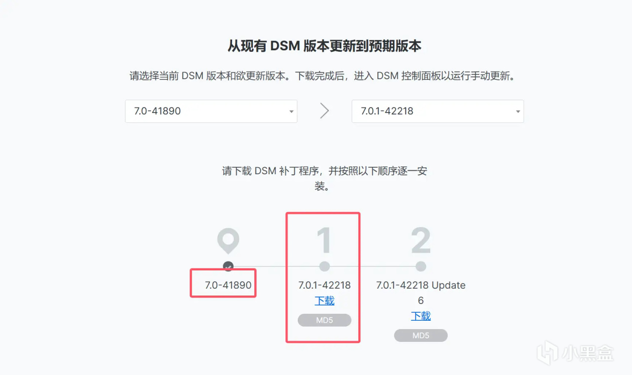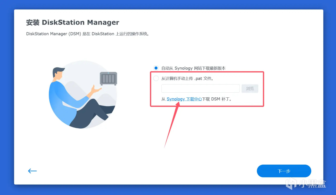 ▼因爲我們這裏用的是DSM7.0.1所以使用手動上傳.pat文件,從下面的下載中心超鏈過去下載就好。