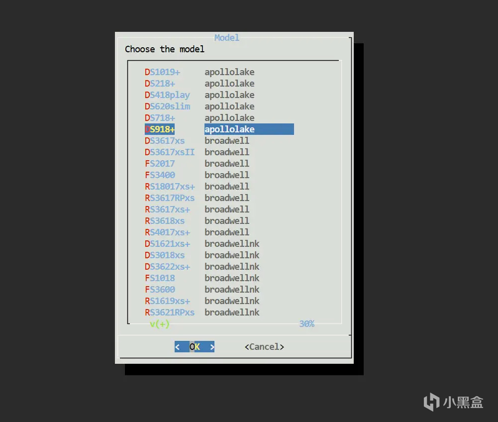 ▼輸入剛剛得到的IP地址,就可以對羣暉引導進行編譯了,首先進入第一項,選擇一個設備的型號。