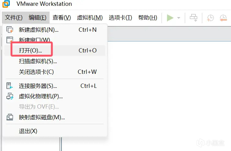▼我們直接下載的就是虛擬機用的鏡像,所以不需要新建虛擬機,直接點擊【文件】-【打開】。