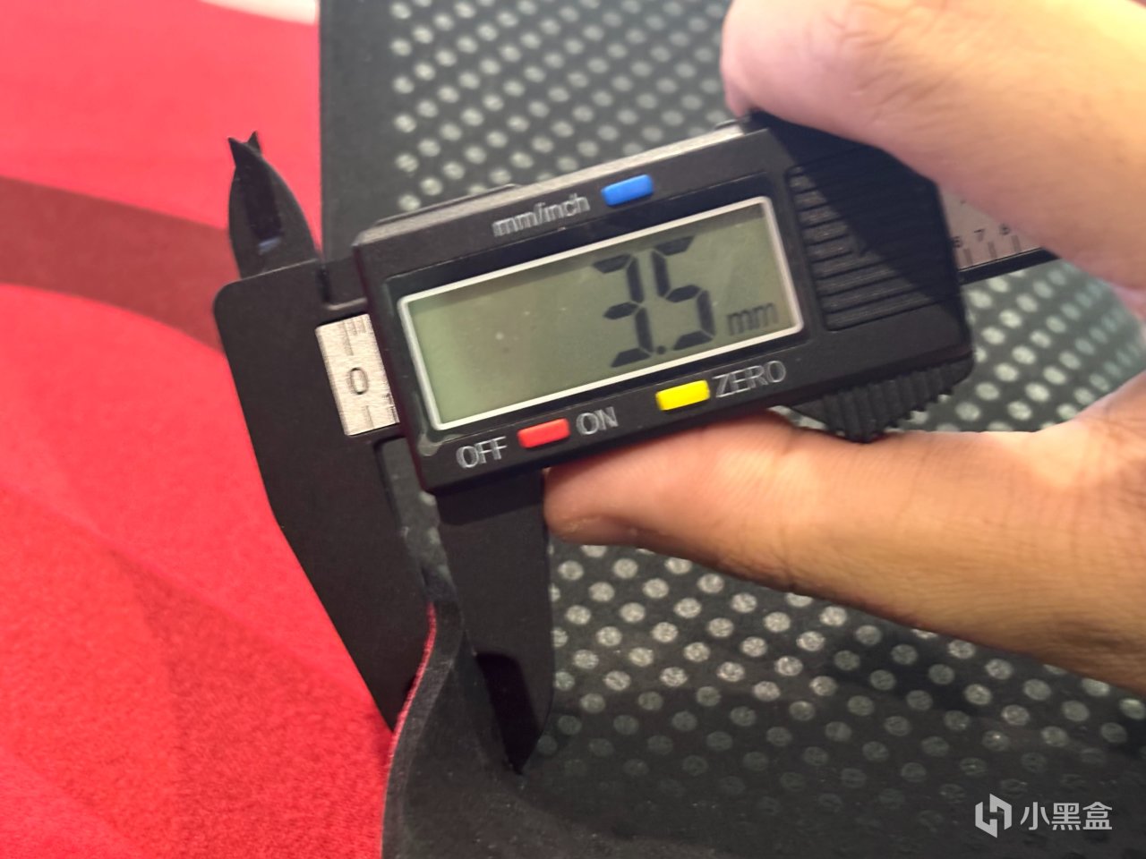 在底胶方面,可能很多兄弟会比较好奇,为什么这么贵的垫子,使用的却是SR底材?因为我经常更换垫子,所以比较清楚,相对于聚氨酯底胶,卓威的SR底胶的软硬度比较适中的,不会过软、过硬,经过测量整体的高度为3.5mm,而且支撑感特别强,启动的时候鼠标垫回弹也特别快。而且如果使用聚氨酯底胶的话,必须要进行平铺包装,没办法卷曲,而很多职业选手去打比赛,都是图个便携,所以橡胶底的优势就展现出来了。卓威的炽II还在底胶上添加了很多吸盘颗粒状的小圆点,吸附能力还是非常强的,而且回弹缓震也不错,鼠标移动的时候,特别稳,贴桌面贴得很牢。