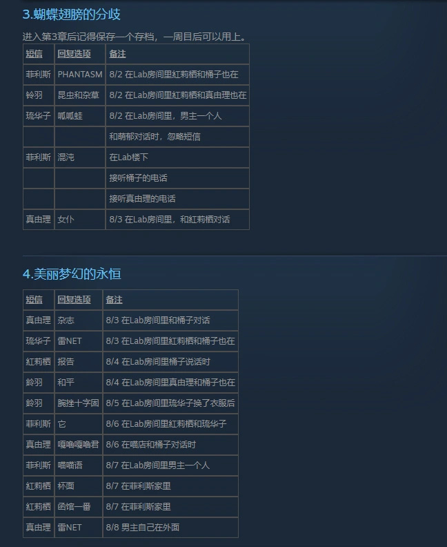 12月5日在Lab中,玲羽躲在桌子下的時候,不要接“紅莉棲”的電話(對劇情無影響),就會有