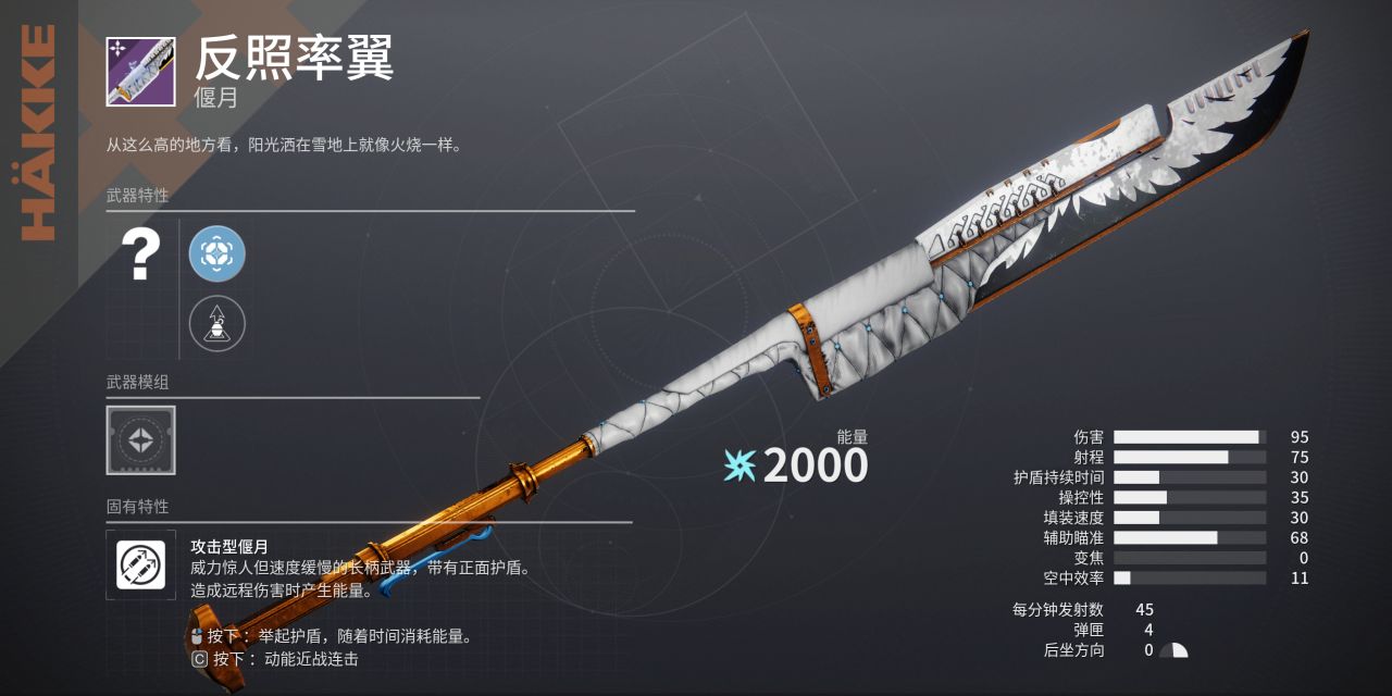 唯二能拿出手的电弧偃月,奈扎雷克的耳语吃了出太早的亏,试炼的偃月perk池不错,但太难出货。建议刷一把以备不时之需。