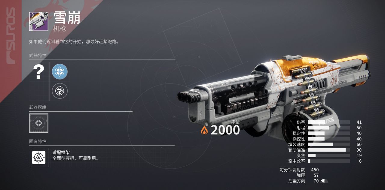 目前唯二可刷的450火机枪,清怪机枪的首选框架。如果你没刷忠于职守,那现在3球一把的价格和7×7的perk池绝对不是一个好选择。