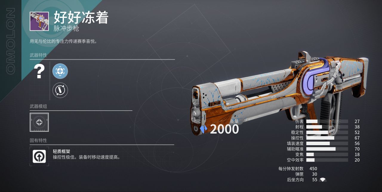 作为白弹武器,这把脉冲的perk还行,但目前使用场景不多,或许给冰袍术士是一个不错的选择。听说450脉冲未来会有pvp补丁加强,但这也和本文无关。