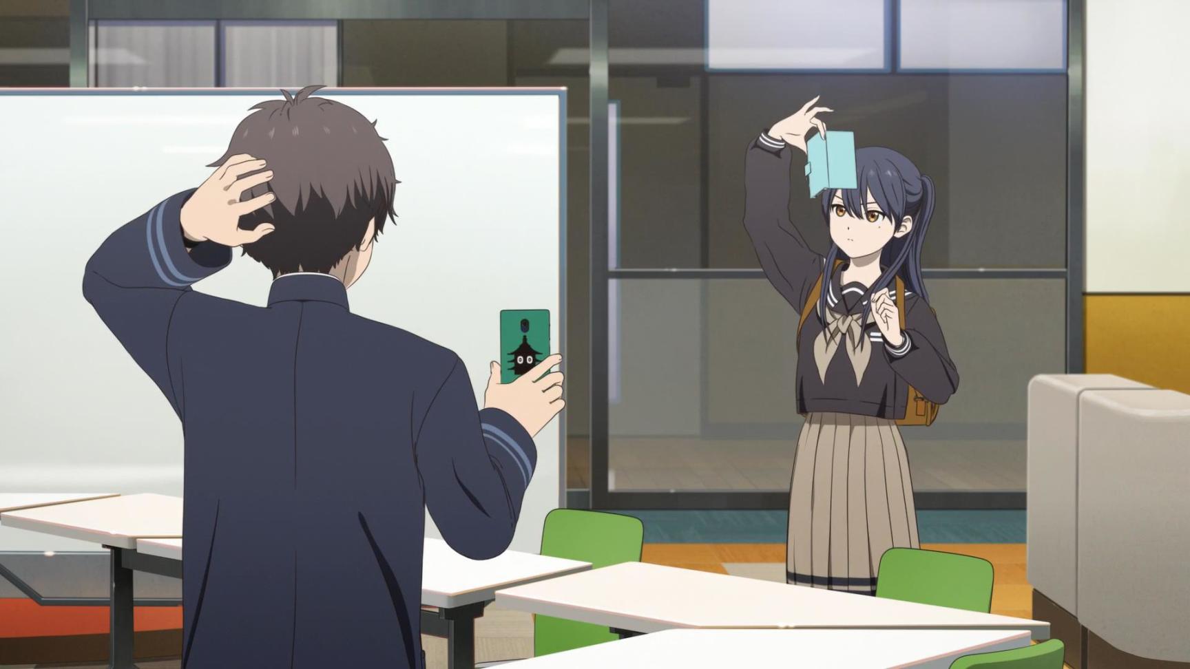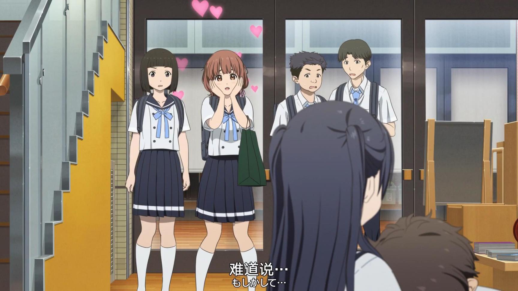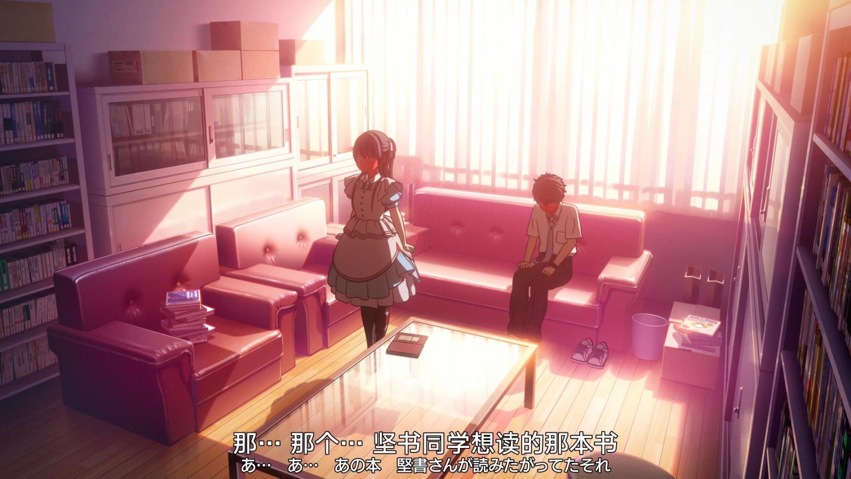 在年级的图书管理员会议上,学长安排着大家的工作,事后面对面建群,大家都迫不及待的想和其他班这个叫小路的可爱女同学交换联系方式,坚书看着被众人簇拥的小路,没敢上前去对话,待大家走后,看到跟自己同班一样被选为图书管理员的女同学“一行瑠璃”正准备离开,坚书鼓起勇气用软弱的语气叫住了一行,想交换联系方式,一行看上去高冷,话也不多,让坚书没了底气。然而一行并没有拒绝,而是拿出手机捣鼓一番,但似乎不太会用智能手机,最后只能用纸写下住址,让坚书有事的话就来这找她。