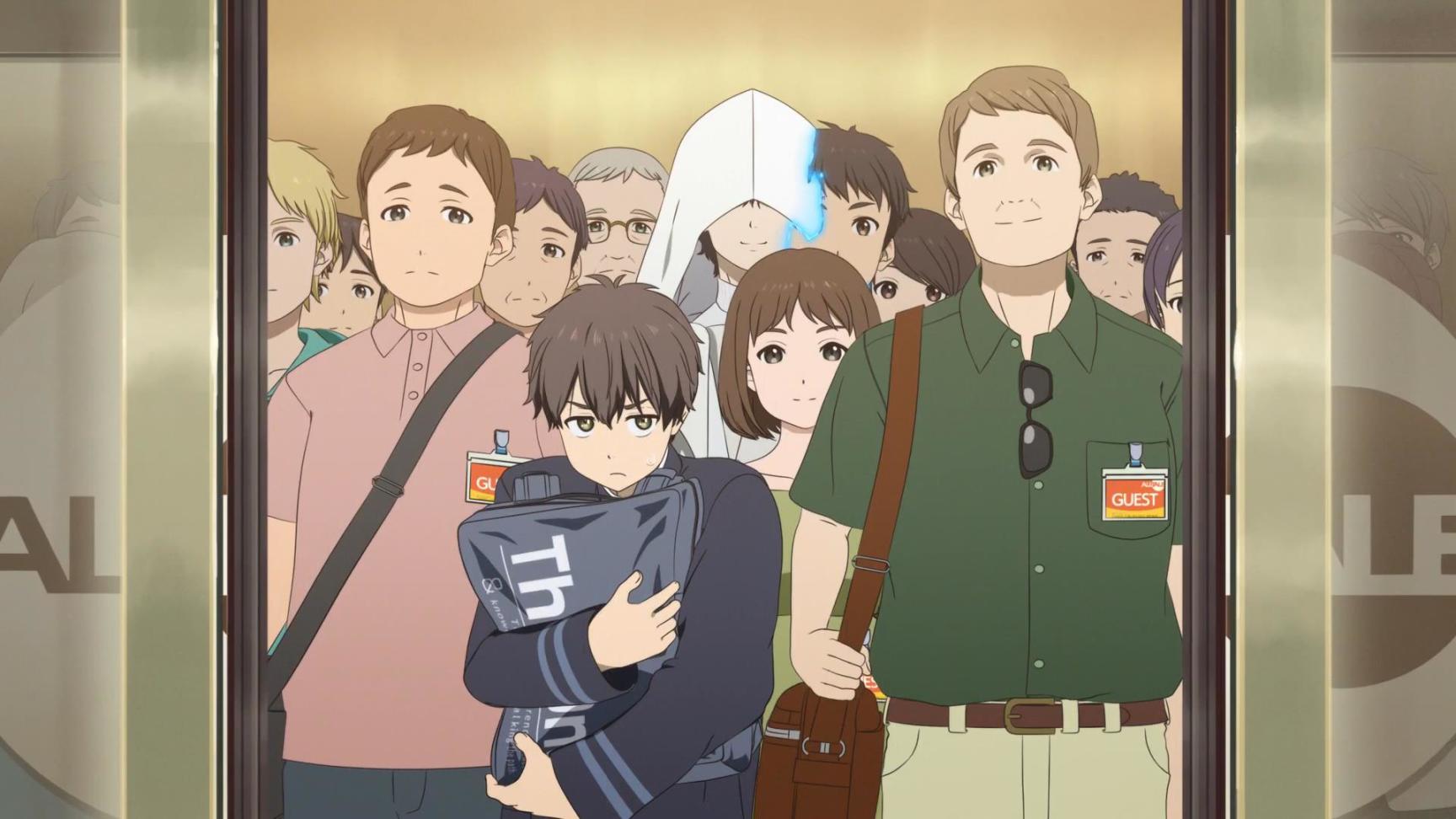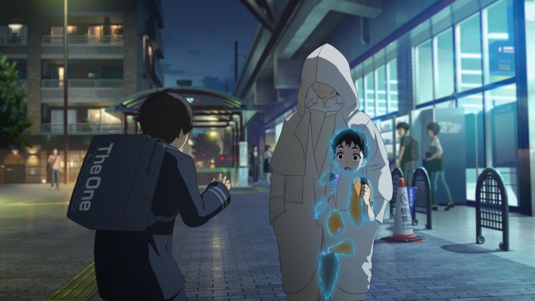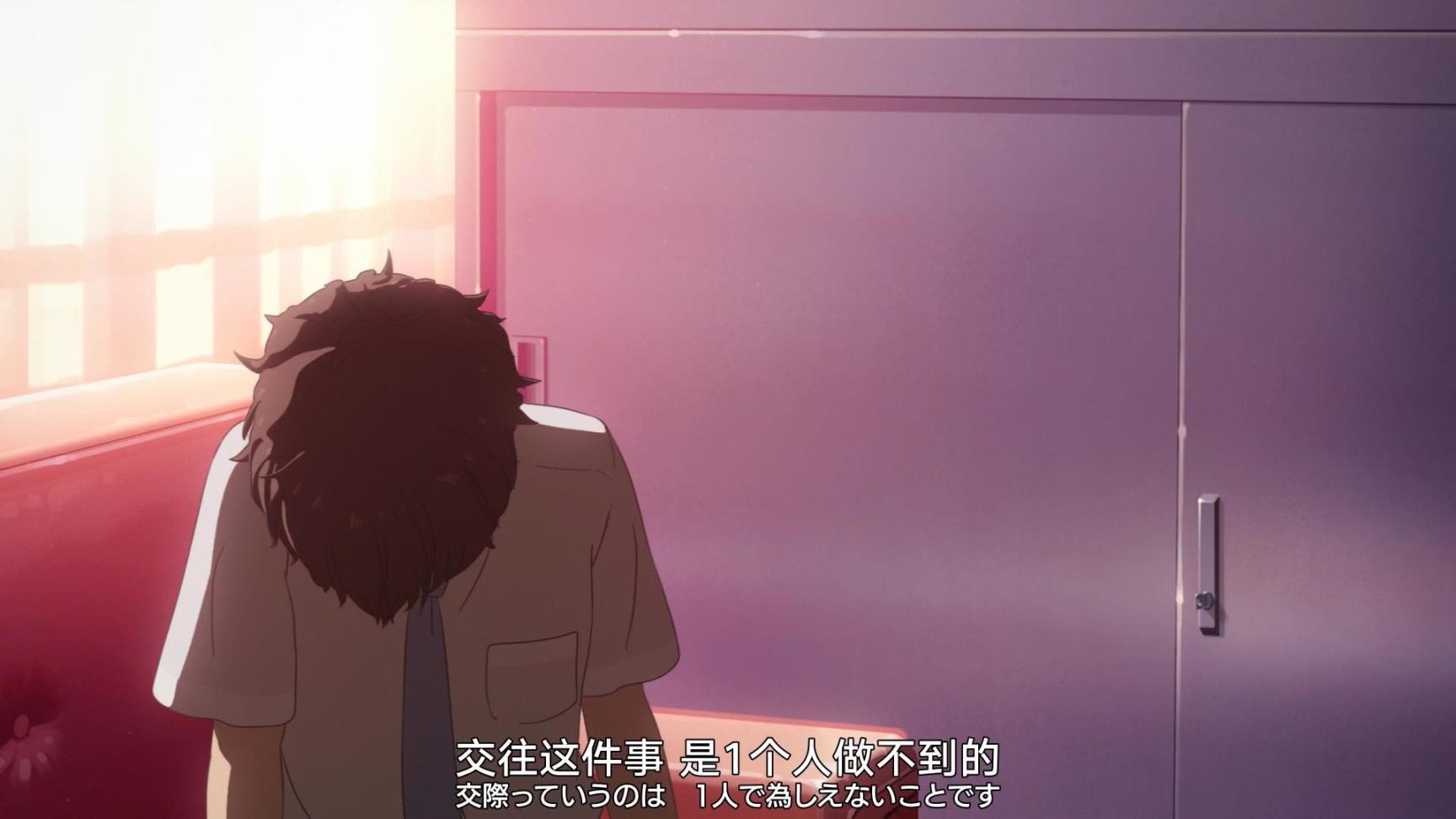 作品对爱情的的刻画其实不算特别多,更多的是发展阶段的故事和两个坚书接触的故事情节,爱情的部分实则是让整部作品走向完美的关键桥段,少而精确,少而重要。而且前面对女主角一行瑠璃的刻画不多,有点看不出一行的内心想法和感情变化,让人感动的反而是在楼梯处一行与成年坚书的拥抱和对话。这里也是值得注意的地方,此时一行身上的书签变成了乌鸦的羽毛,可以理解为是被乌鸦附身的状态,而这只乌鸦是真正现实世界中的一行瑠璃化身而成,所以这一幕一行对成年坚书说的话,实际上是现实中一行想对沉睡着的坚书说的话。