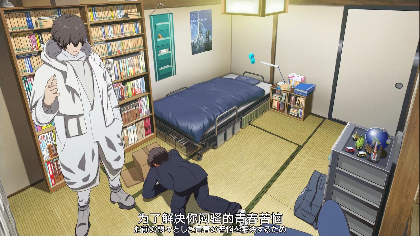两人回到了家中,坚书很快就接受了成年坚书说的话,也不再去追究什么是现实什么是数据,但还是不相信所谓的“帮自己找女朋友”这件事,再次询问其来这里的目的,成年坚书知道坚书还不相信,为了让坚书相信自己,命令三足乌鸦把书柜上的一个箱子撞了下来,里面掉出两本写真集,吓得坚书急忙去遮住,这更加证明了这个人真的是10年后的坚书,并且知道过去的自己心里所想和所有的一切。(这图片过不过得了审啊)