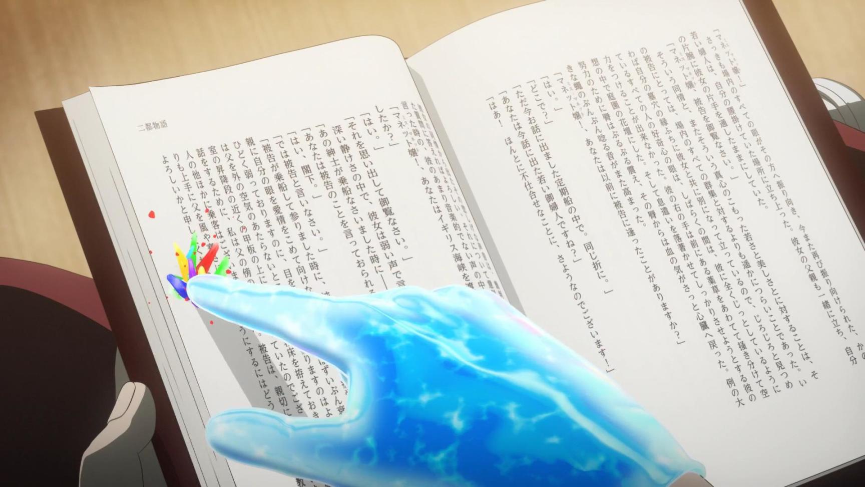 虽然这样,但上学还是要正常上学的,在学校里,坚书开始刻意地观察跟自己一样是图书管理员的一行瑠璃,一行性格强势,我行我素,性格与软弱的坚书完全相反,唯一的共同点就是喜欢看书而且少说话。