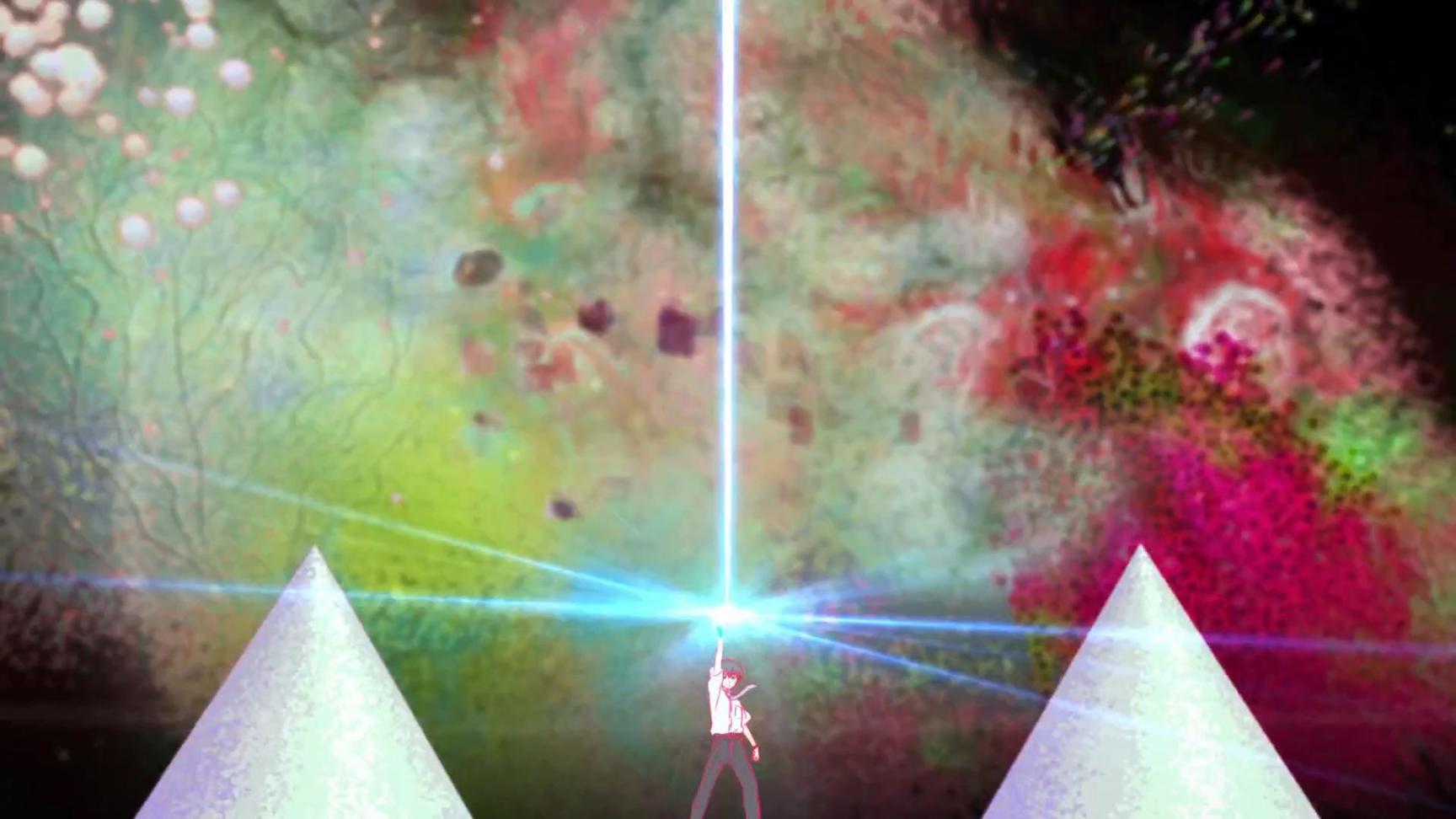 坚书一路追到一个没人的长廊位置拿回被丢地上的书,拿回书后的坚书身边的环境开始发生变化,一些从未有过的记忆突然闪现在坚书脑海中,彩色的光线在柱子上反弹穿梭,最终聚集到坚书面前形成一个光球,光球消失,一个戴着白色兜帽的白衣人摔了出来,身上时不时还有一些光线划过,白衣人刚喊出了坚书直实的名字,坚书害怕的马上飞速逃跑了。