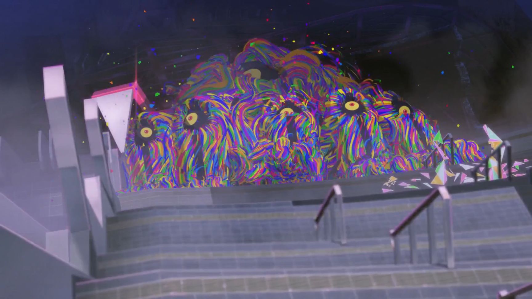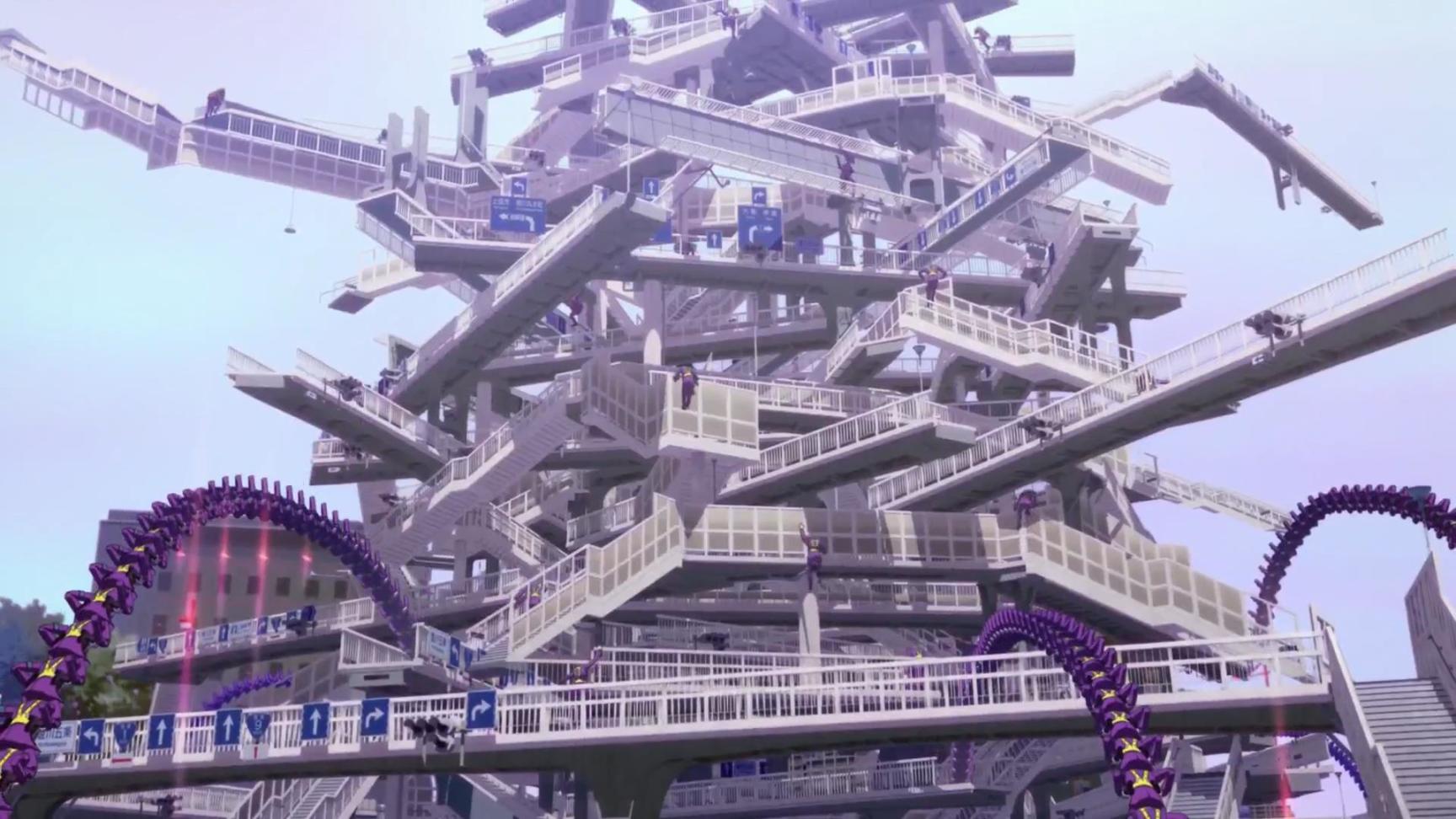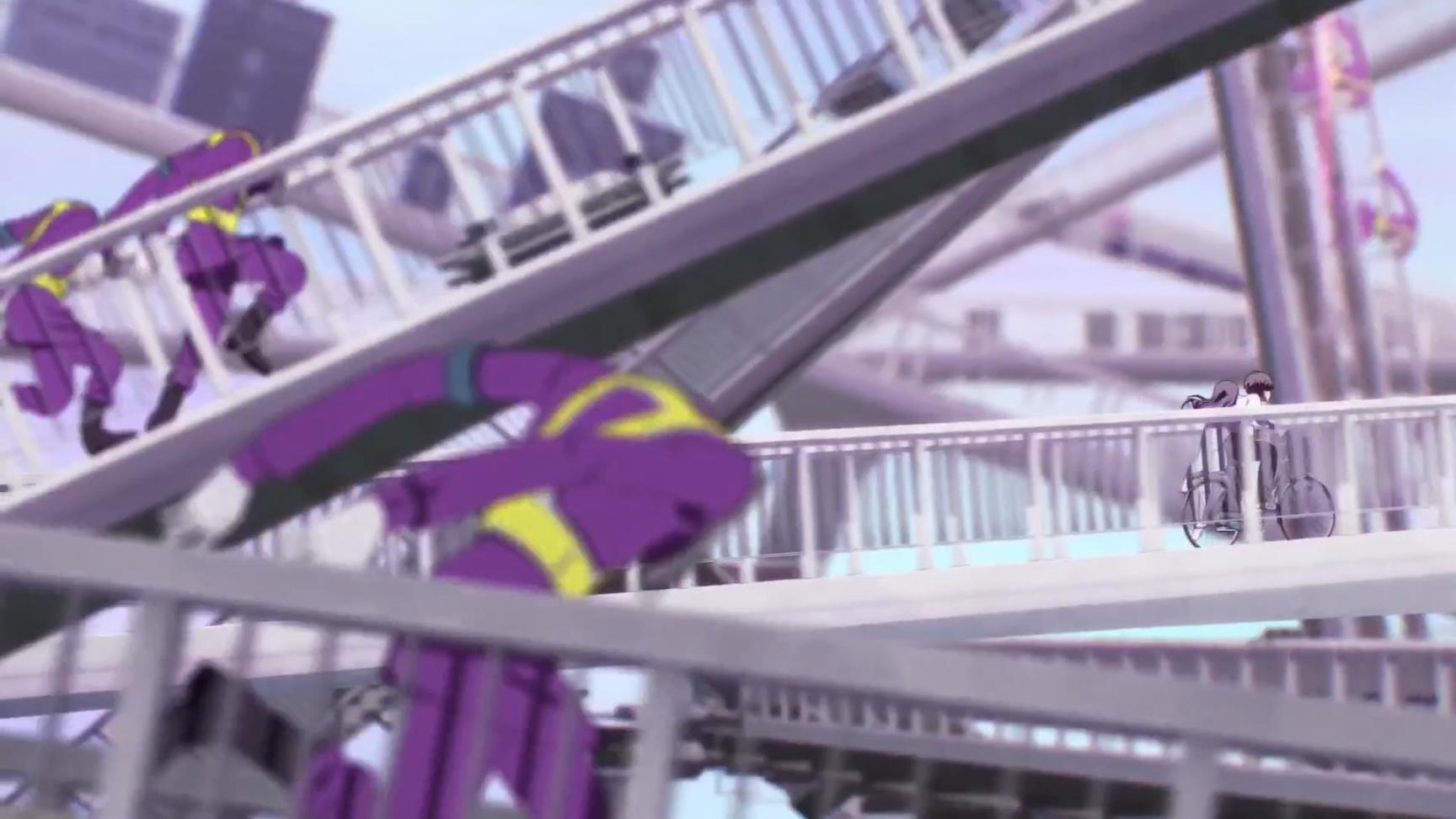 坚书背着一行在街道上奔走,尽管神之手能不断制造障碍,但无奈警卫的数量越来越多根本挡不住。在乌鸦的指引下明确了传送最佳坐标,两人必须到车站大楼梯处传送回自己的世界。坚书背着一行移动速度太慢,而且又不会开车,只能选择最简单朴素的方式加快速度,那就决定是自行车了,两人便与警卫在大街小巷中展开一场如同竞速游戏般的生死时速。