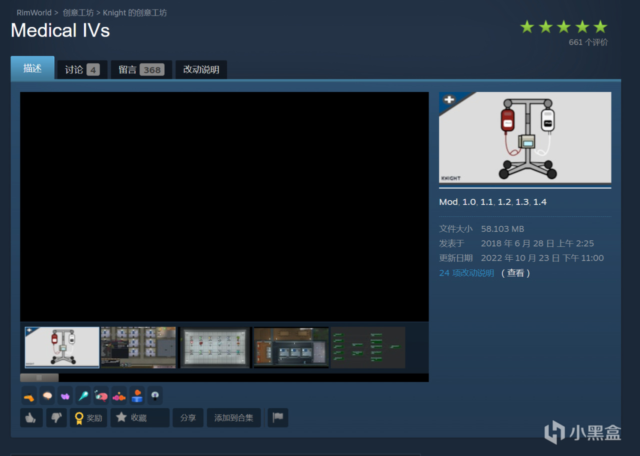該 Mod 添加了 6 種不同的 IV;降低殖民者出血率的輸血,暫停不動的殖民者食物需求的營養滴注,麻痹殖民者所有痛苦的止痛藥滴注,改善殖民者血液過濾從而加快免疫力的抗生素滴注,使棋子處於醫學誘導的昏迷狀態的麻醉滴注,最後是結合了止痛藥功能的閃光世界滴注, 抗生素和滴血。此外,當放置在醫院病牀附近時,每次滴注都會提高醫療質量和手術成功幾率。