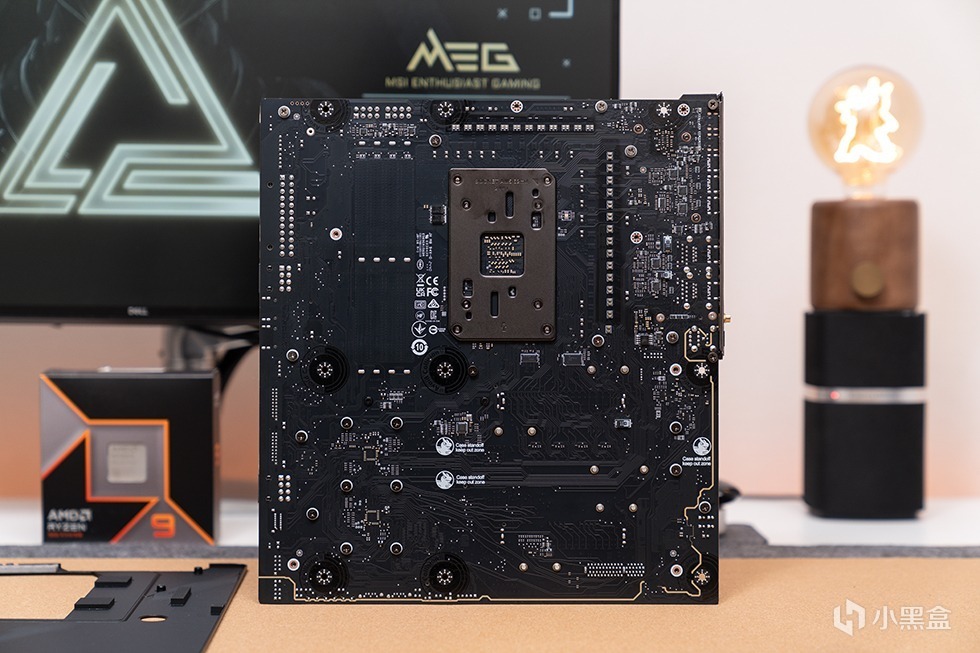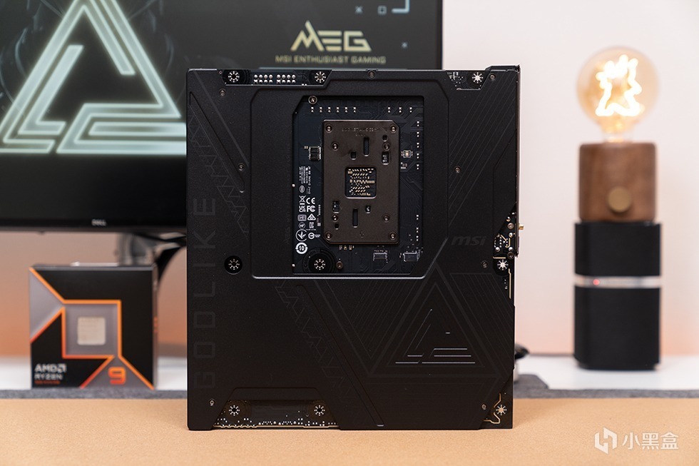 背面配备了金属背板,背板表面带有“GODLIKE”、“MSI”等暗纹及纹理,对PCB背部起到了保护和装饰作用。背板对应供电模组位置均配置了高效散热垫,有效辅助元件散热。
