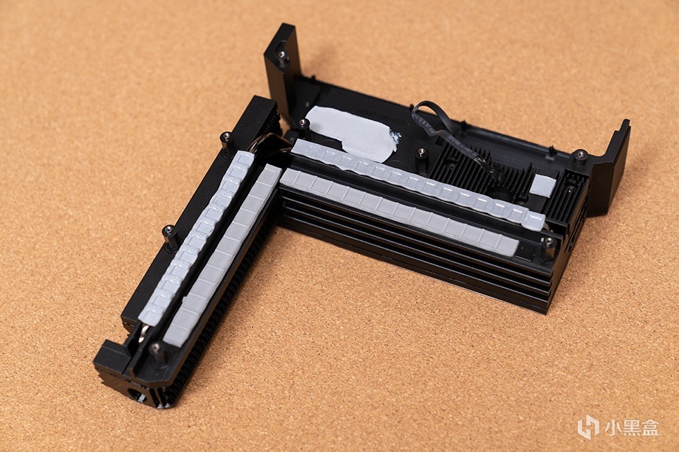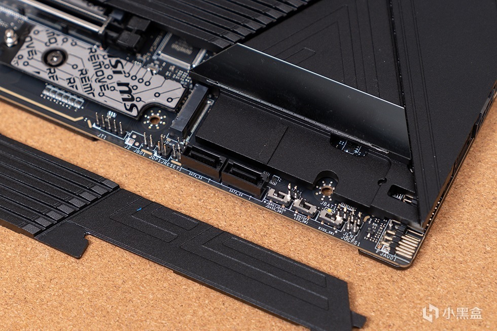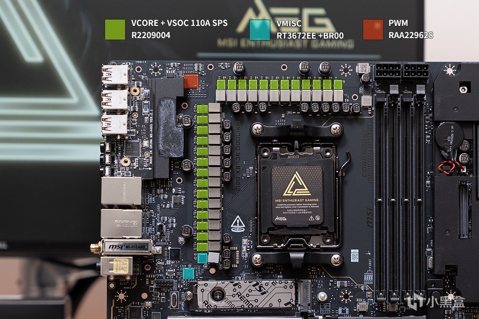 为了保证供电模组能稳定运行,在VRM区配备超大的金属散热鳍片,采用HDT 直触式设计,辅以高品质的9W/mK MOSFET导热垫作为热量传导媒介,进一步提升散热效能。