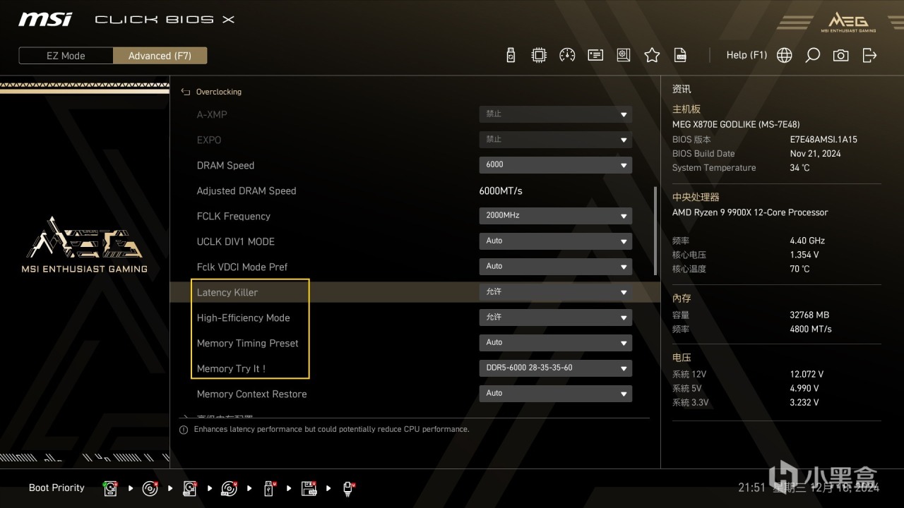 搭配Latency Killer、High-Efficiency、Memory Timing Preset等功能,可大幅降低延时并提升内存的运行效率。