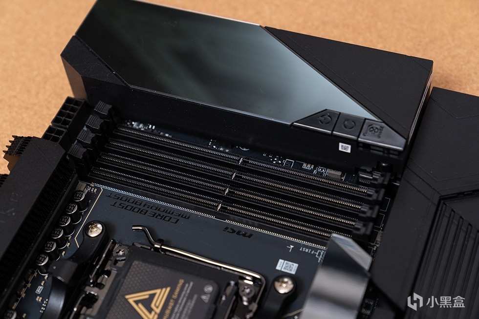 第一条PCIe主插槽带有EZ PCle Release设计,内置弹簧结构,只需轻按一下就可以解锁显卡锁扣,并巧妙的将按钮和动态仪表盘上的开机、重启按钮集成在一起。