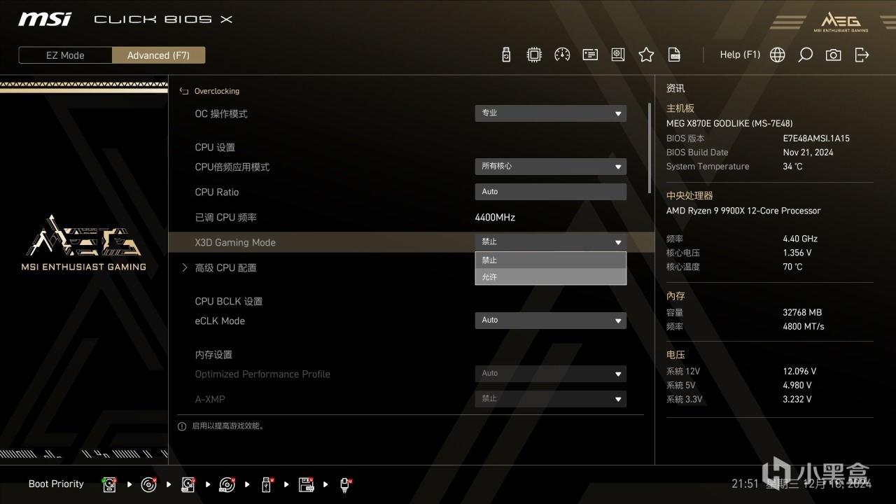 针对X3D系列的处理器,MSI 在持续优化其性能的同时还追加了一项新功能:X3D Gaming Mode,打开该选项后将提升 X3D 系列处理器的游戏性能。