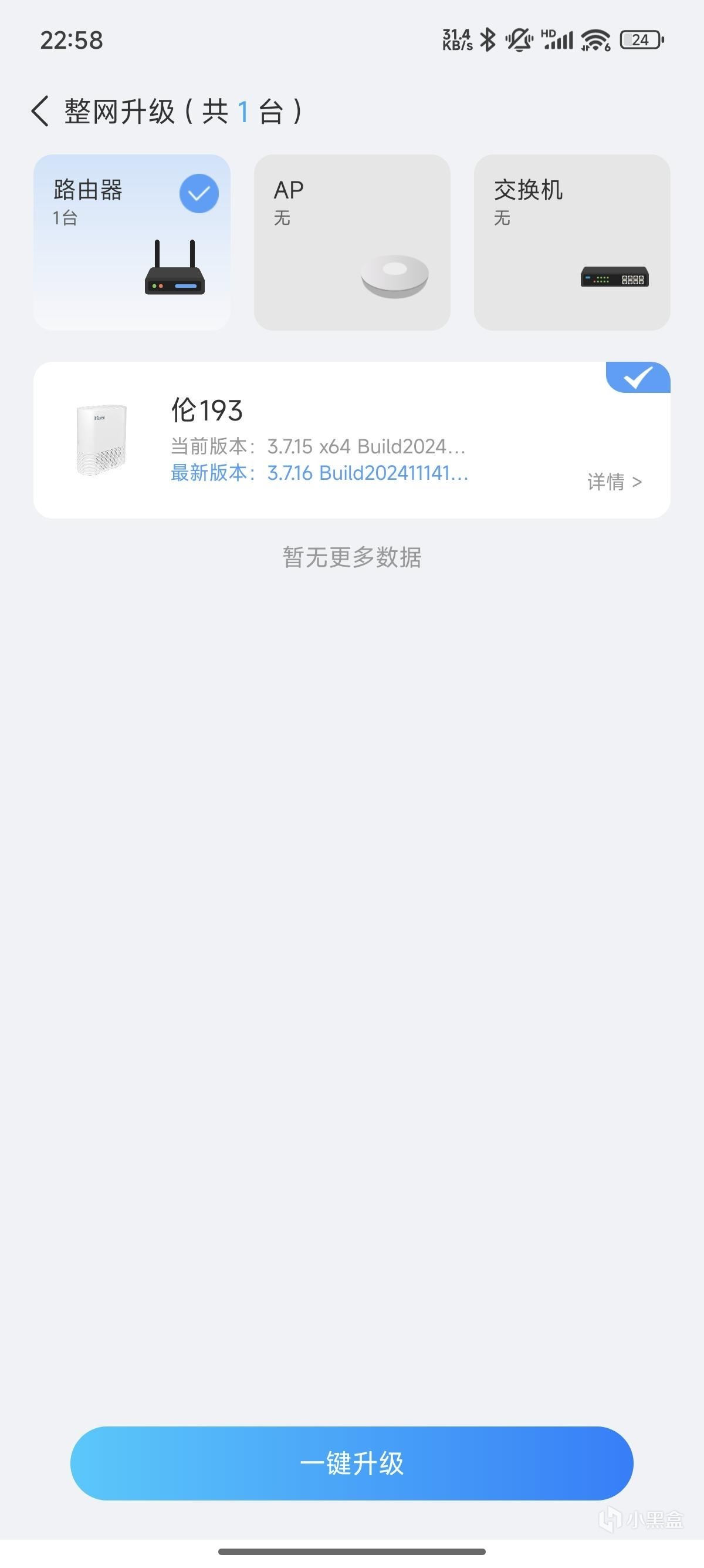 整网升级功能则对于企业非常实用,如果全部部署iKuai或搭载iKuai系统的设备,管理起来非常轻松,可以实现一键升级。
