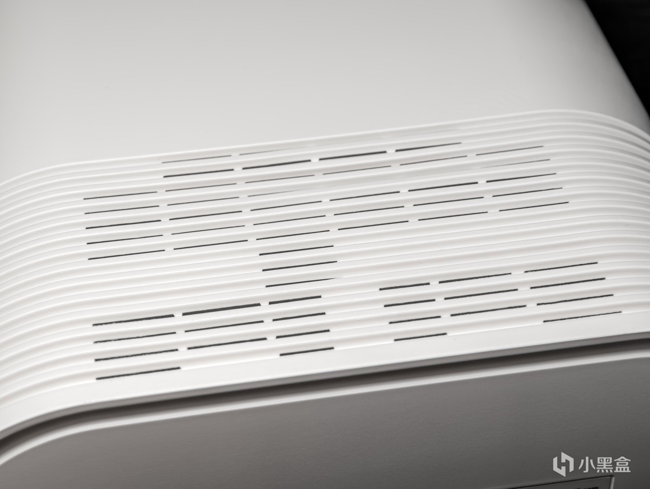 机身上方呈跑道形状,直接镂空保证散热,但透过开口看向内部,似乎做了一定的保护处理,隔绝了灰尘直接进入。