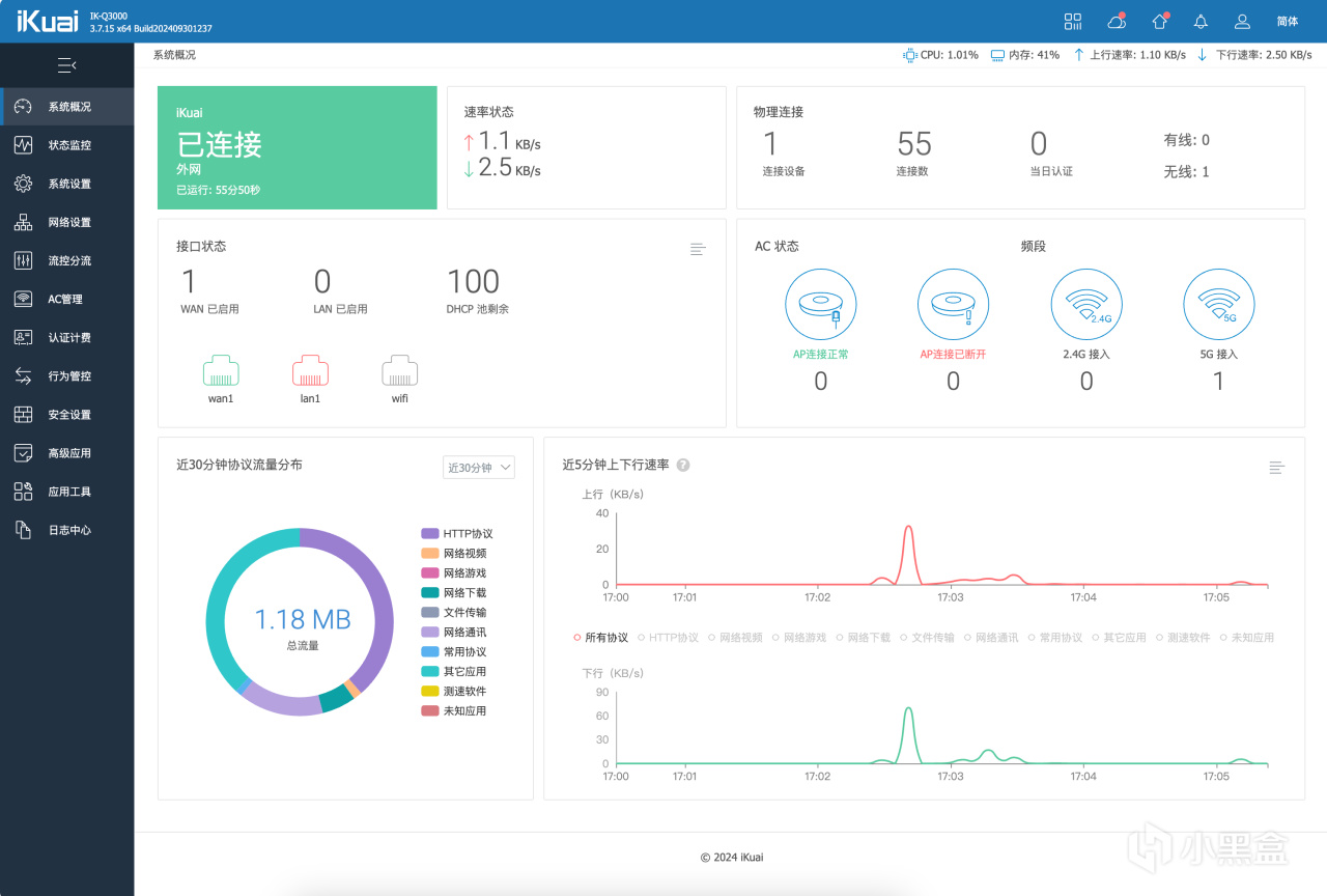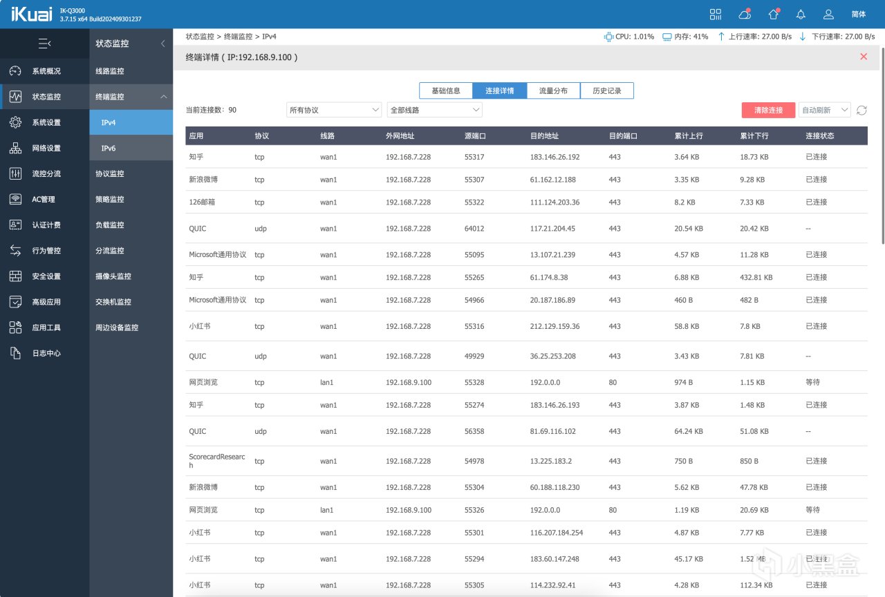 其中,对这两者稍有研究的朋友应该都听说过或者刷过iKuai固件,他家的系统就是以智能流控、行为管控等功能而出名。