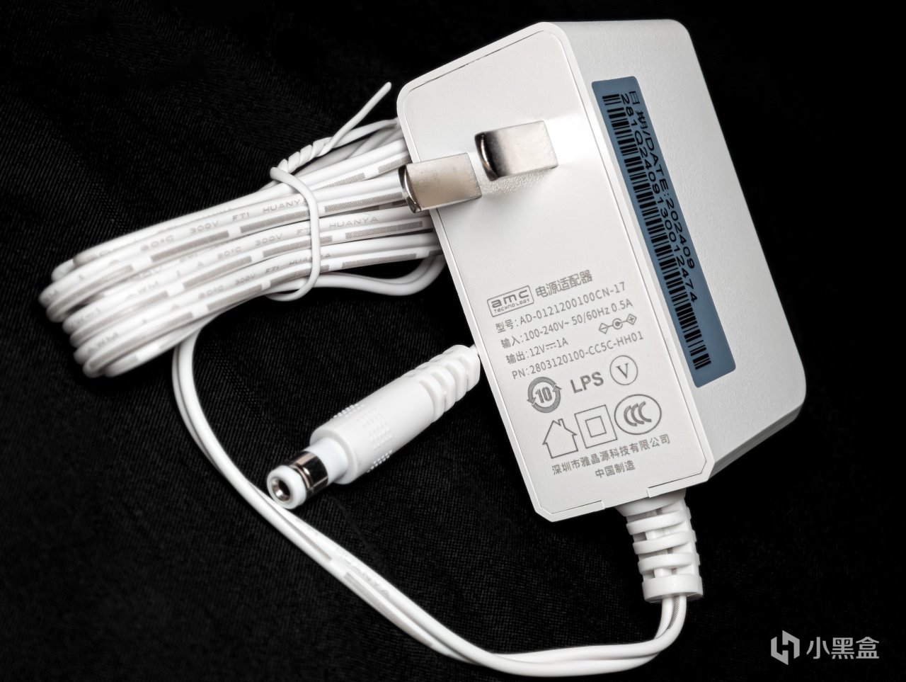 DC电源适配器规格为12V 1A输出,由深圳雅晶源代工制造,这家之前也是中兴、小米、戴森部分产品电源制造商。