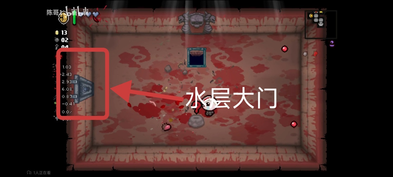 在陵墓層擊敗墮化媽腿之後使用完整的菜刀或者主動道具尖頭鑰匙戳擊肉紅色的門打開進入見證者boss的路線。