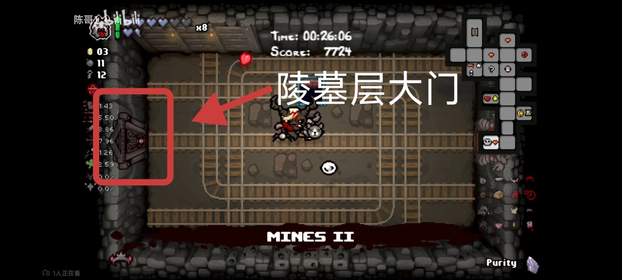 陵墓層則需要在礦洞2層打敗boss之後,在boss房間內的黑色大門處獻祭兩顆血量進入
