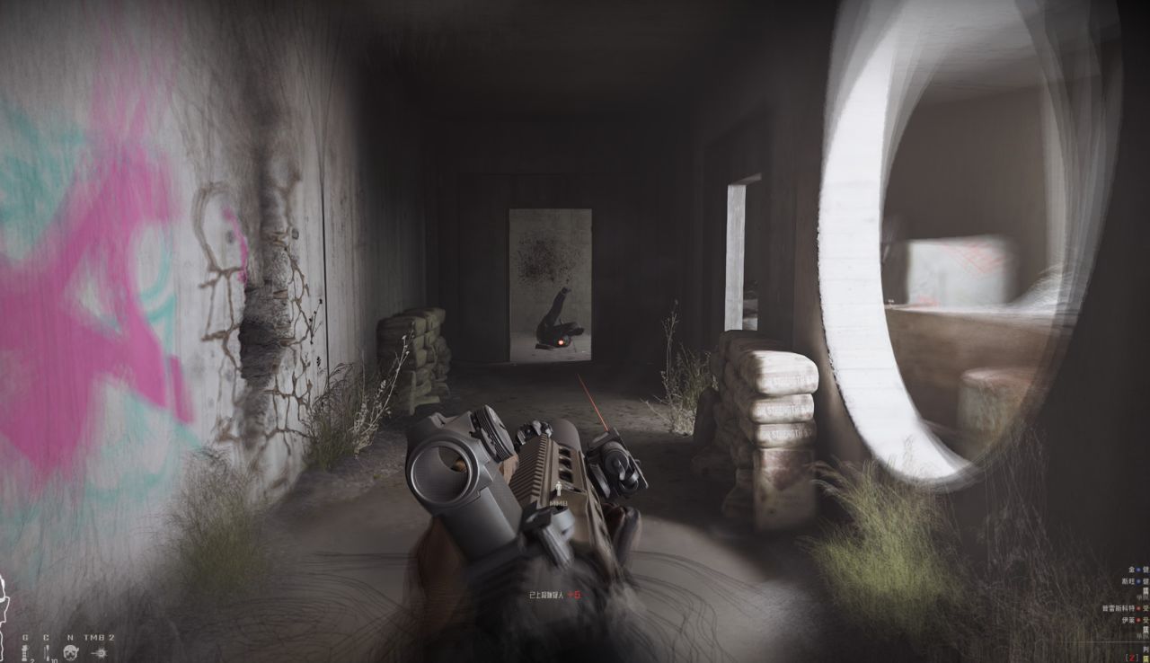 除了換彈方式,本作在射擊方面也進行了很大程度的擬真設計。如瞄準器的安裝位置並不在槍口正中心,激光其實是裝在槍管上方,當目標離得越近,發生彈道偏差就越明顯,這也是新手玩家的疑惑“明明都對準了目標,咋還能卻打歪了”。