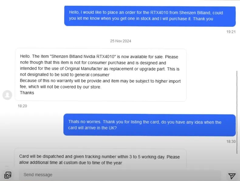事情來源是外國網友分享視頻自己花了 100 歐元(摺合人民幣 760 元左右)從中國訂購了一張「NVIDIA RTX 4010」顯卡。