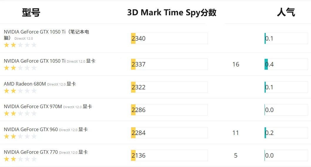 在 3D Mark Time Spy 測試中得分爲 2209 分,還沒有打過 AMD 的核顯 Radeon 680M,大致與GTX 960 相當。