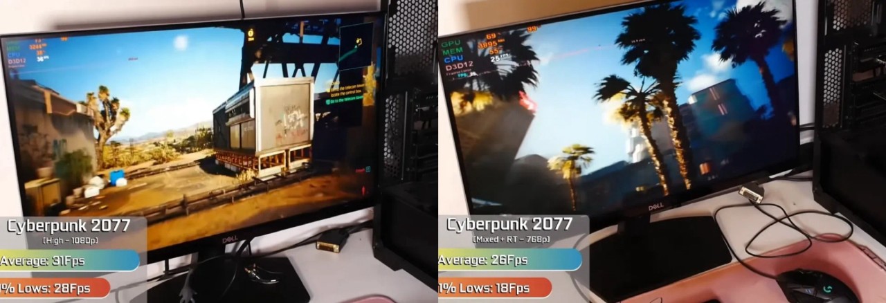 而在遊戲實測中,1080P 分辨率,熱門單機遊戲《荒野大鏢客 2》平均 33FPS,《賽博朋克 2077》平均 31FPS,且 768P 的情況下開啓光追還能達到 26FPS。