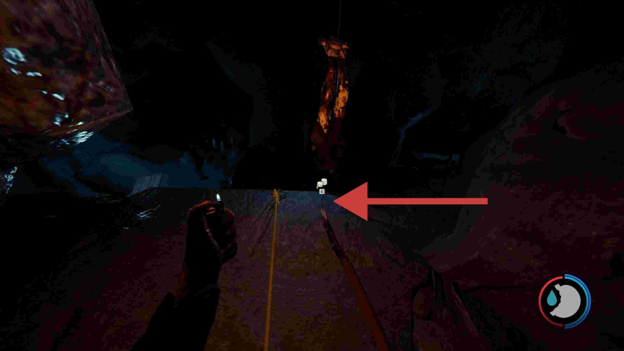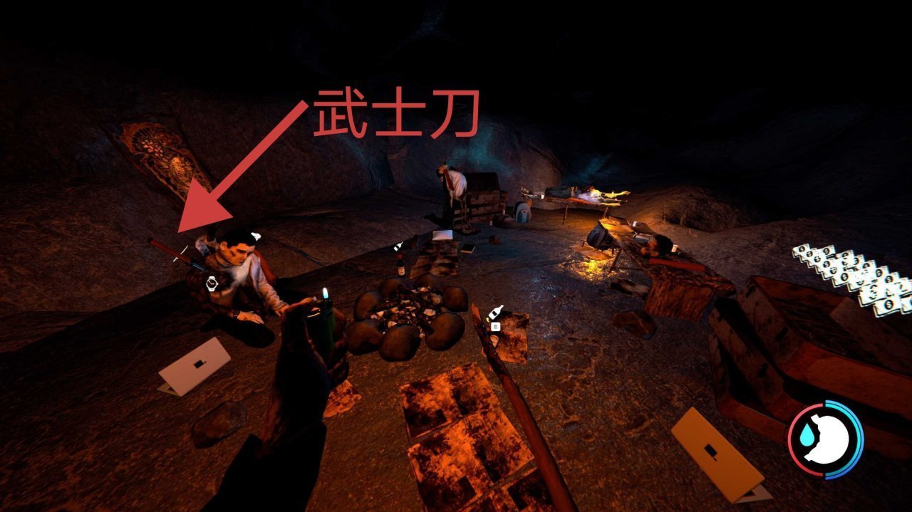 9.在武士刀洞囗建帳篷存檔,下武士刀洞(途中會看到吊在半空的shi體,shi體下方有硬幣,收集用於製作炸彈)