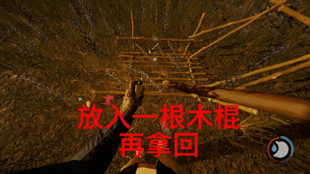 *[ 打開揹包,右鍵金屬錫盤,再放入1根木棍,再多次右鍵揹包上方的木棍 ]