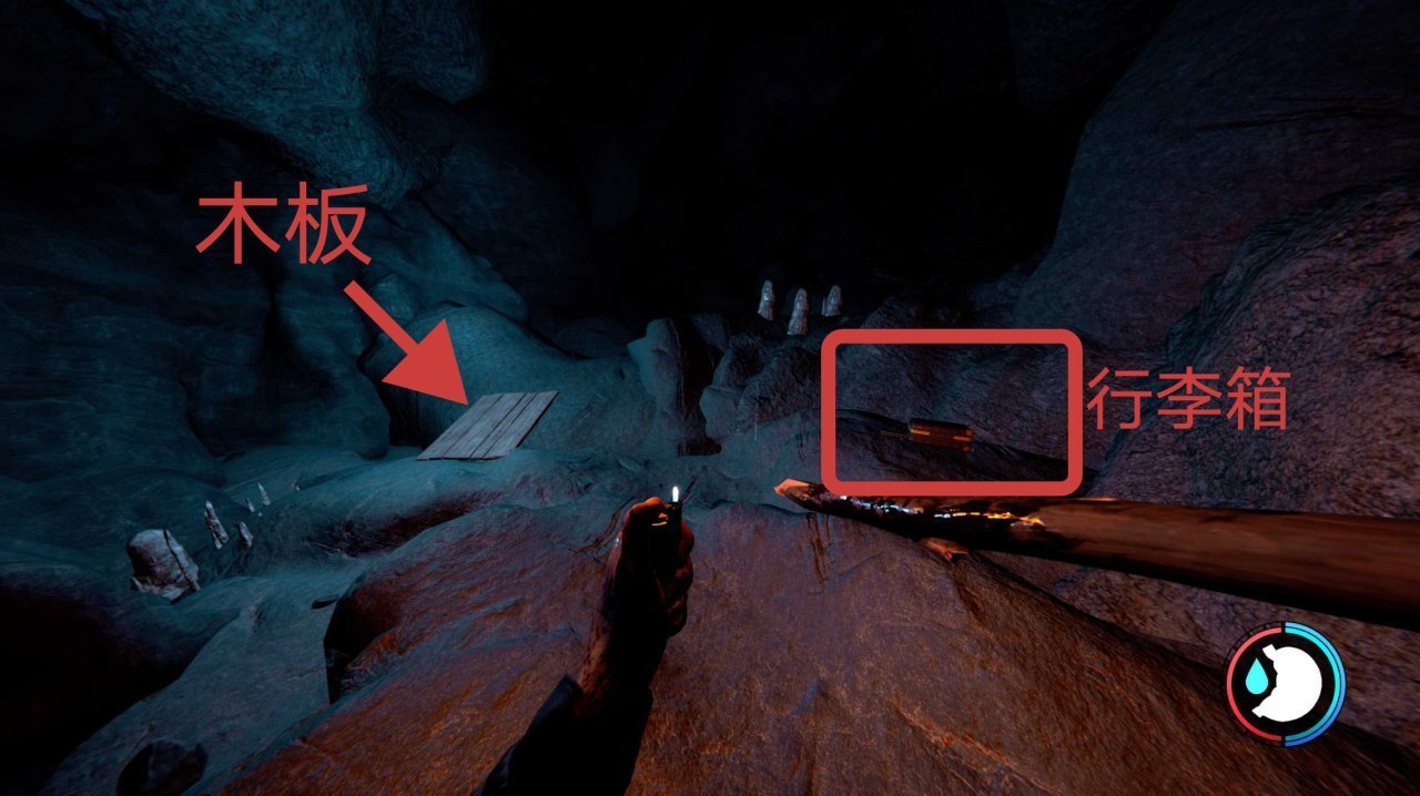 地上有 木板,是指引(會看到一個深棕色行李箱,裏面有衣服)