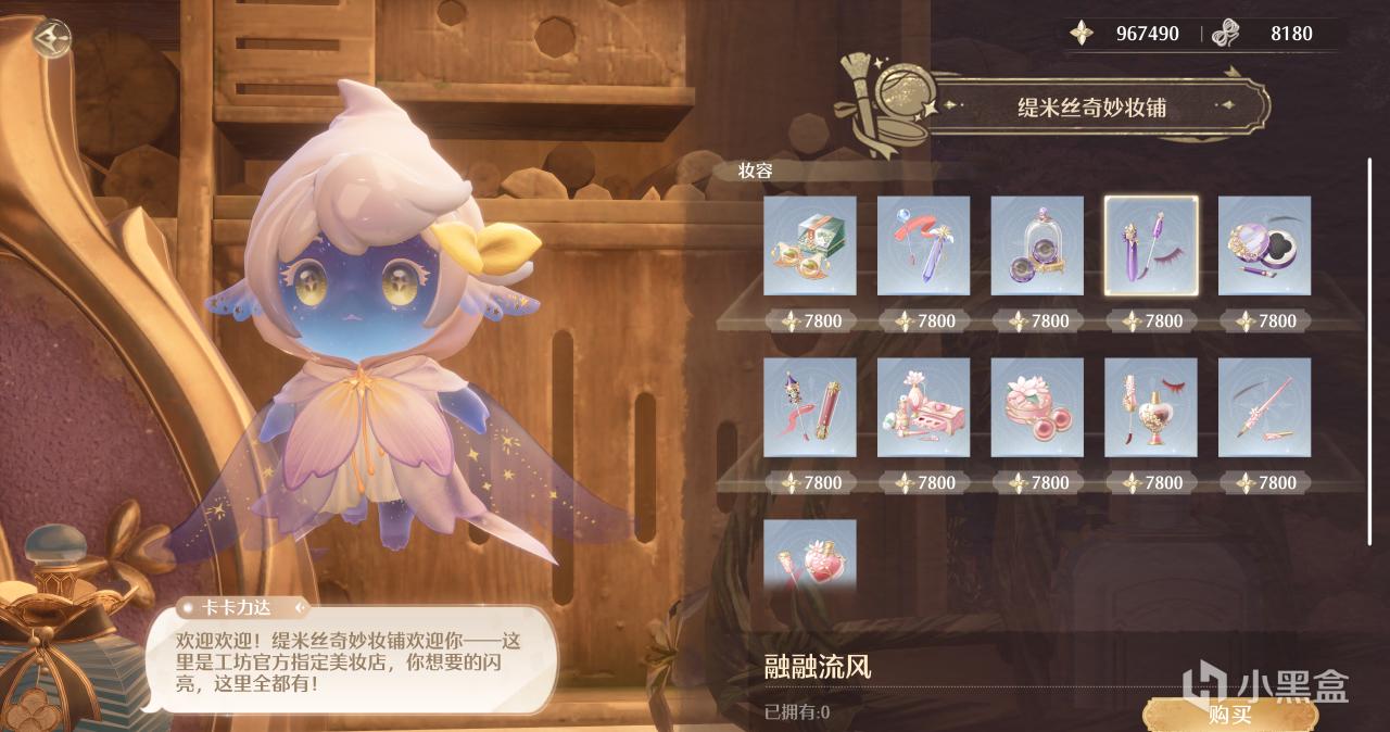 找到NPC卡卡力達,與它對話就可以在商店購買美瞳,睫毛,口紅這三類美妝產品了!部分美妝非常的百搭!
