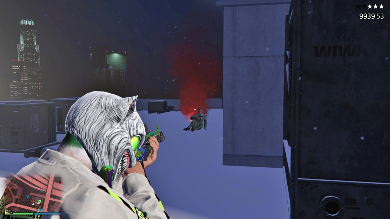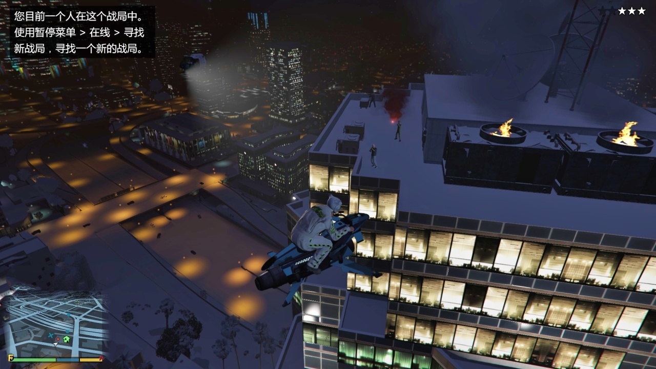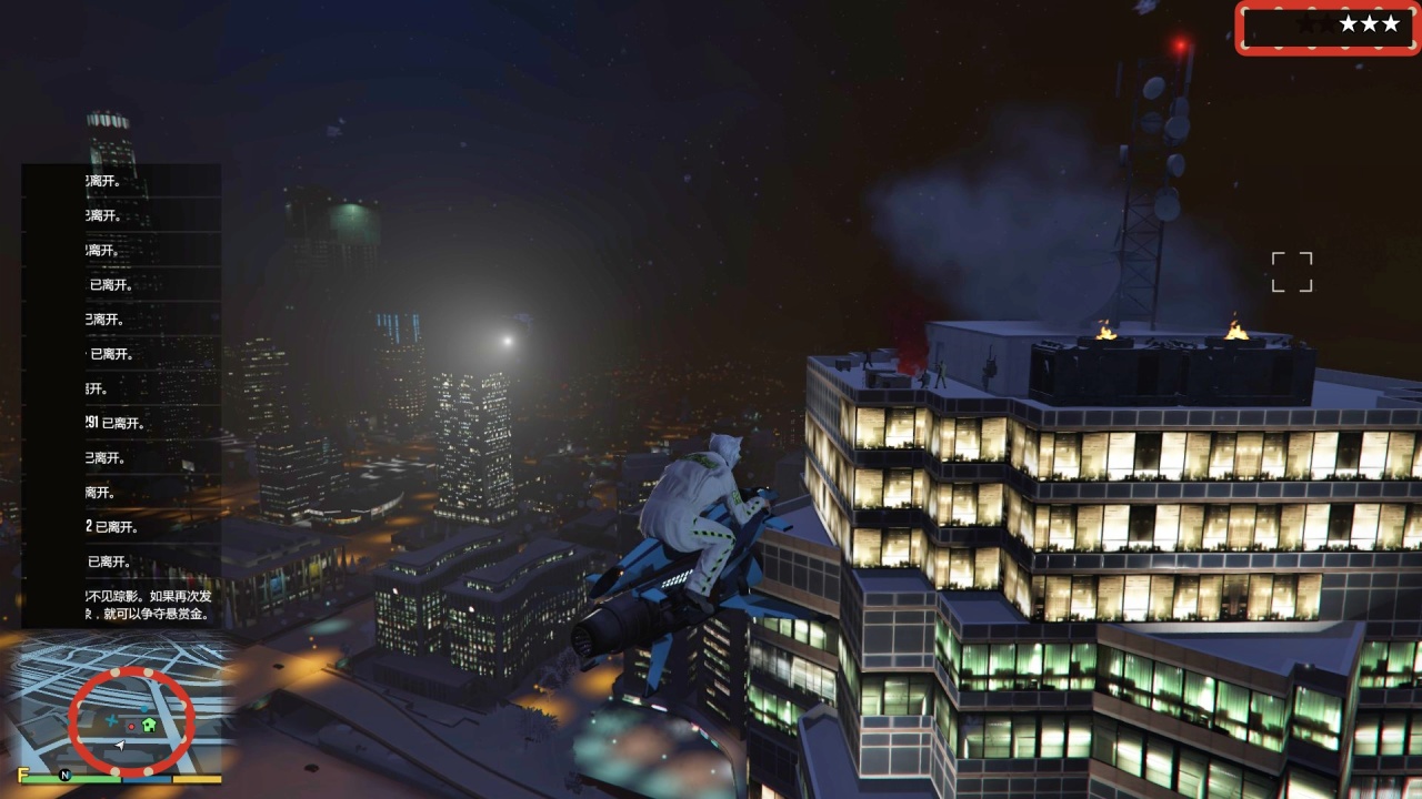 玩家来到楼顶后会与这3个NPC敌对,同时触发3颗警星