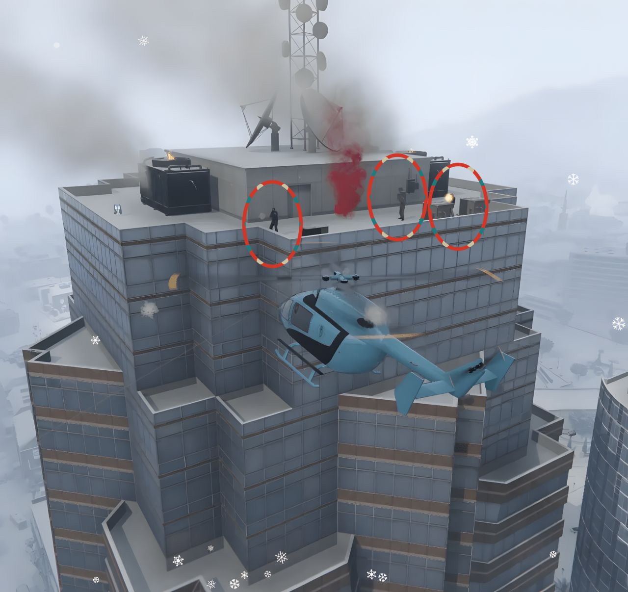5.楼顶有3个敌对持枪NPC,玩家需乘坐飞行载具前往楼顶,将这三个敌对NPC击杀