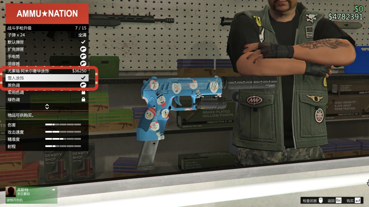 前往任意”武装国度“武器店,选择特制卡宾步枪,更换涂装