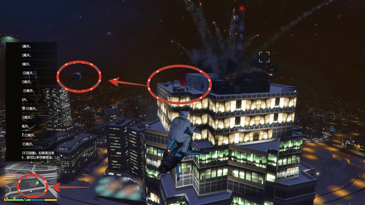 4.事件成功触发时,小地图有红点,威泽尔大厦楼顶发生剧烈爆炸