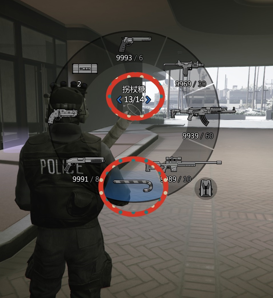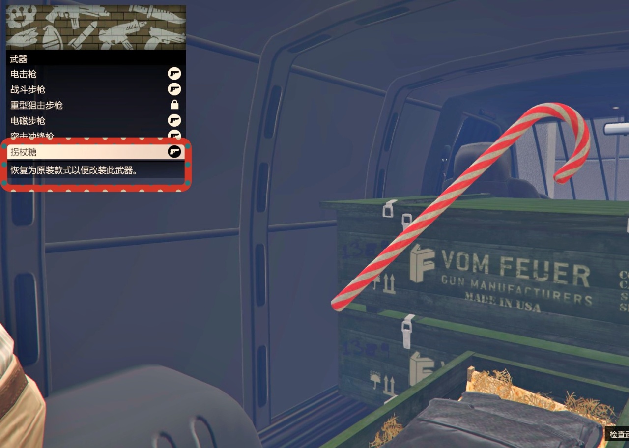 3.活动期间前往洛圣都地图各地的武器售卖厢型车处。可以免费获得近战武器“拐杖糖”