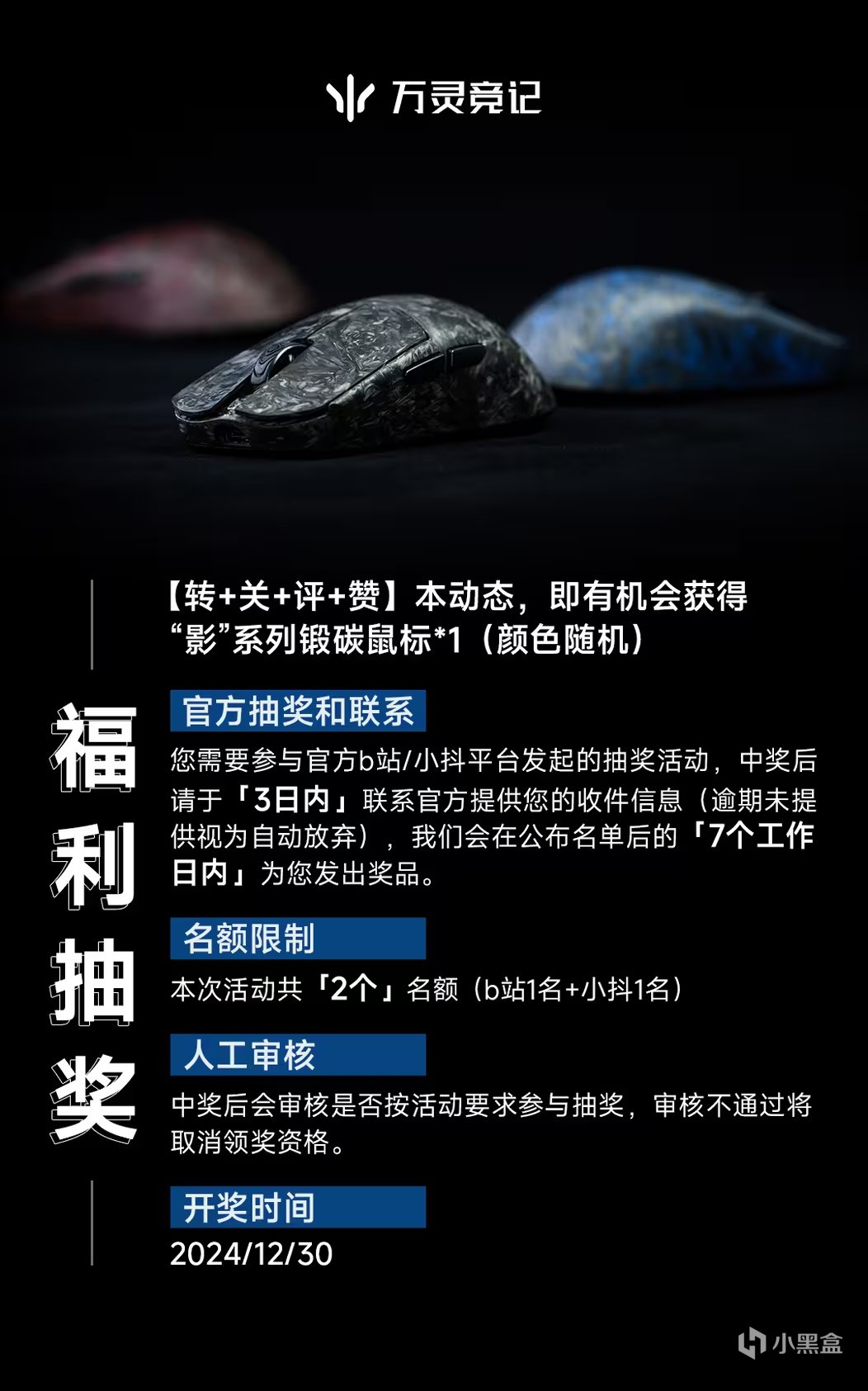 万灵新品“影”系列锻碳电竞鼠标抽奖活动
