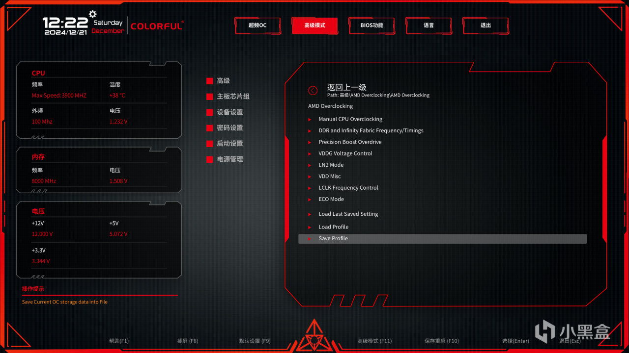 高级模式下最重要就是AMD Overclocking,因为是AMD官方下放的通用模板,基本就不存在什么短板之处了,唯一就是配置文件存储有点不够直观,希望后续能自定义多个配置文件以及设定配件文件名称吧。