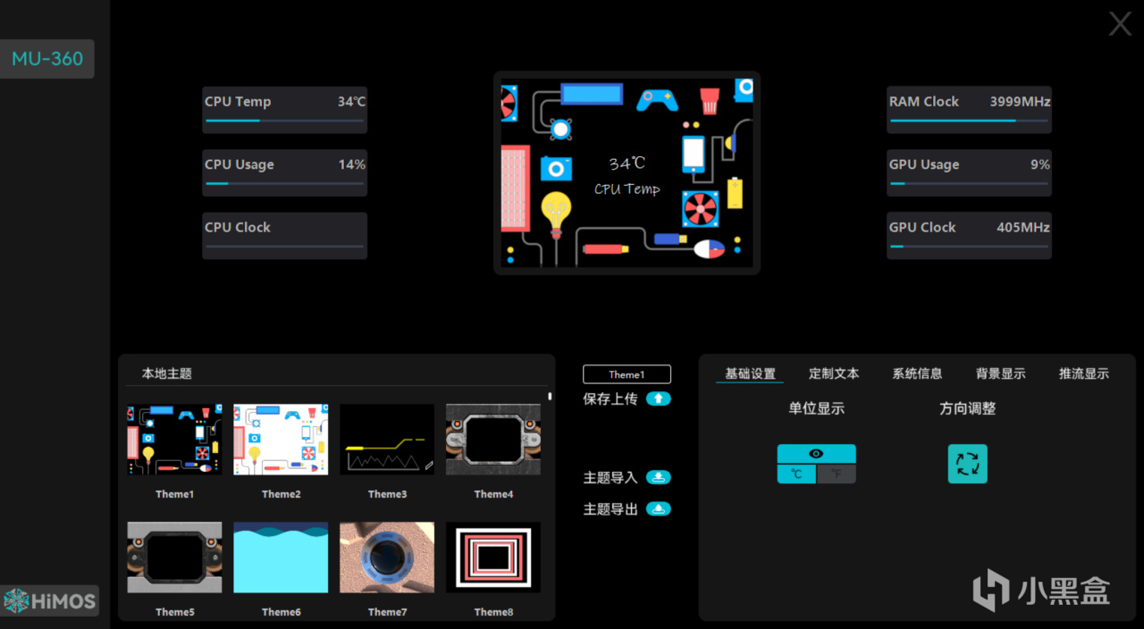 鑫谷昆仑MU-360则需要HiMOS软件来控制,除了最基础的文本、背景以及系统监控信息调节,这款水冷还有创新的推流显示功能,也就选择屏幕上的指定区域推流到水冷屏幕上,游戏玩家最爱的功能吧~
